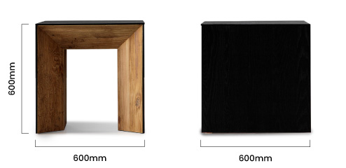 Cordoba Square Side Table - Natural & BlackThe Cordoba Square Side Table brings understated elegance and functionality to your living spaces. Crafted from reclaimed pine with a black oak veneer top, its dark natural tones exude warmth and sophistication. Designed for versatility, it can serve as a bedside table in the bedroom or a focal point in the living room. With its sturdy construction and timeless appeal, this side table is perfect for displaying decor or enhancing your space with minimalist charm.