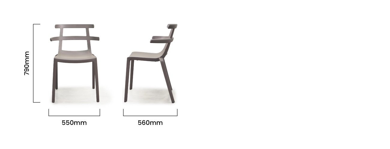 Crafted from high-quality polypropylene, the Tokyo Dining Chair boasts a sleek, sculpted frame with flowing lines and a matte finish. Its unique ladder-back design delivers a sense of openness that adds a stylistic edge, while the curved armrests create an enveloping effect. Built for everyday durability, the chair is UV-resistant, easy to clean, and stackable. Whether used around a dining table, on a patio, or as a feature piece in your workspace, the Tokyo adds a dynamic visual element to any setting. Its neutral earthy tone complements both muted and bold décor schemes, while the ergonomic contour ensures a comfortable seating experience for any occasion. Note: Only items specified are included. Any other furniture pieces, décor and accessories shown in the product photography are excluded.
